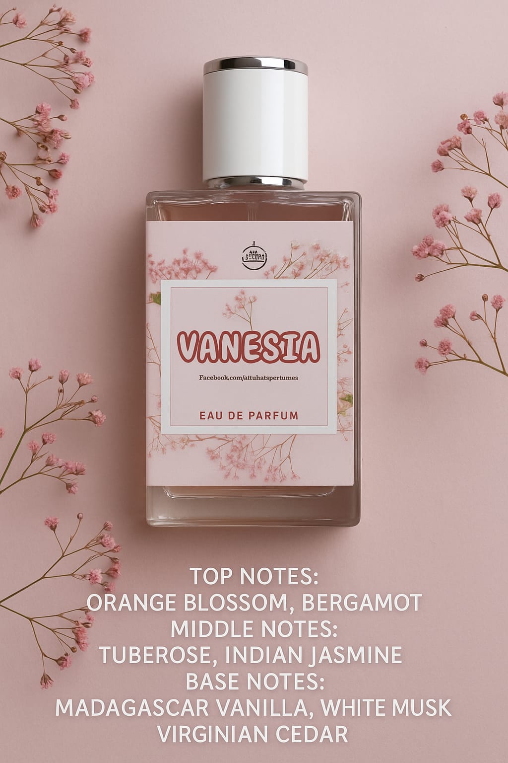 وینیسیا ایک ایسی خوشبو ہے جس میں شامل ہے ٹیوبروز اور وائٹ فلاورز کی نرم مہک، جو آغاز میں ایک پرسکون اور خوشگوار احساس جگاتی ہے۔